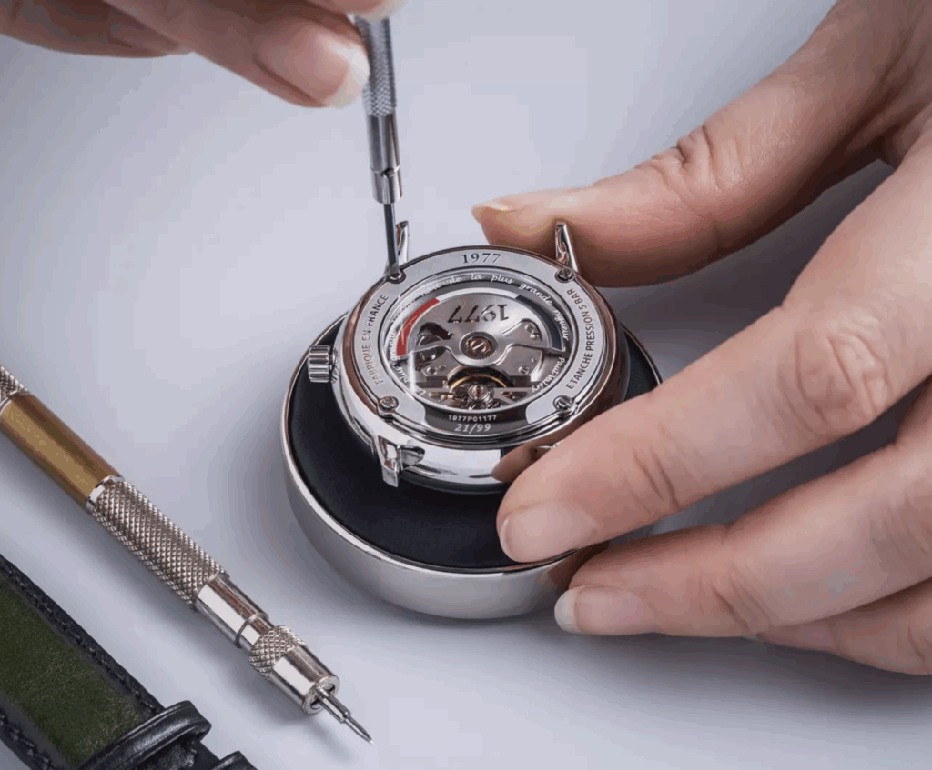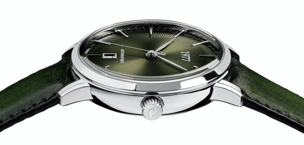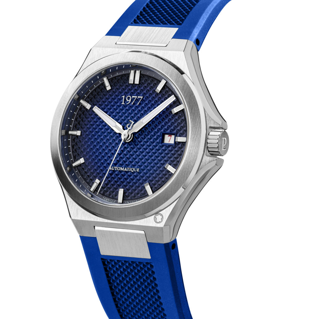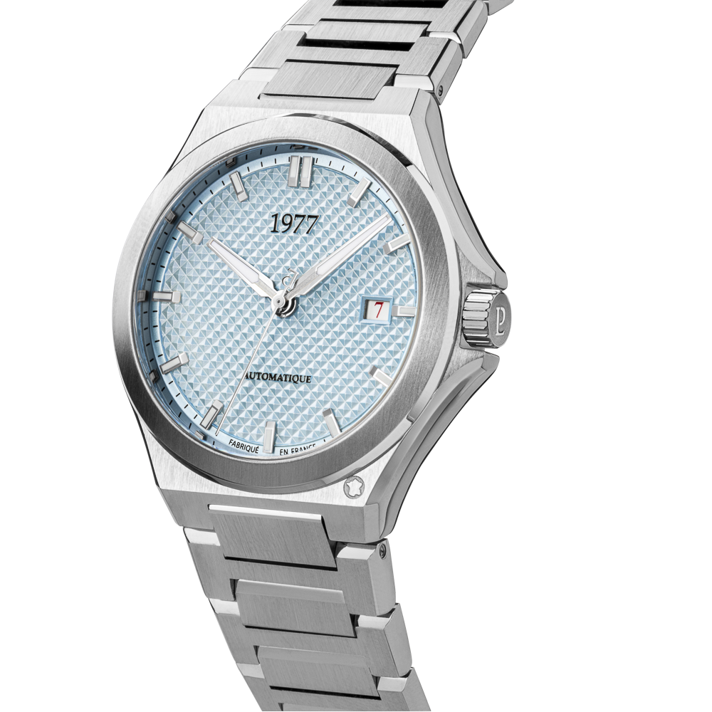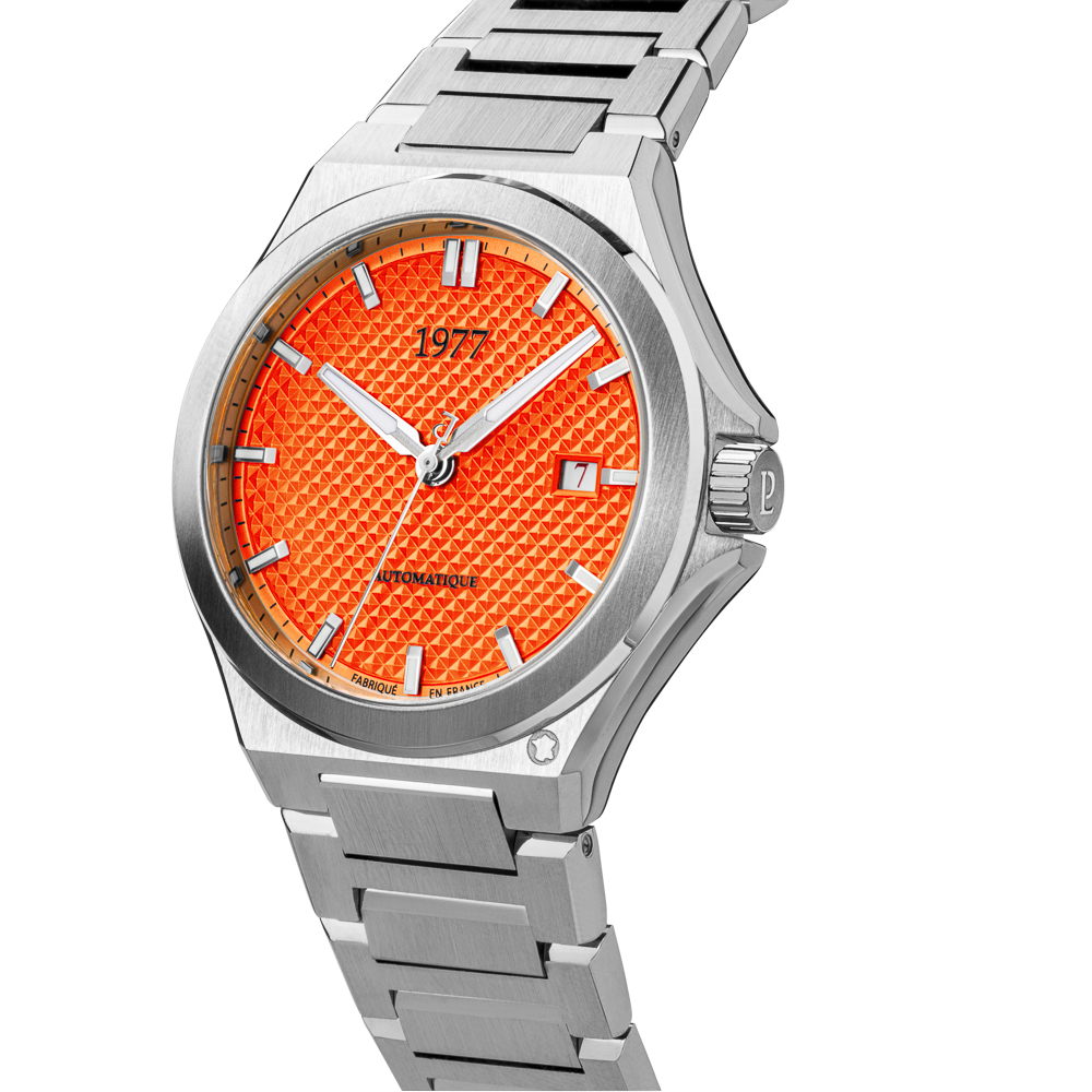 Le mouvement automatique France Ebauches utilisé dans toutes les montres 1977 est un mouvement issu des calibres historiques FE 4 600 et FE 5 600 produits jusqu’au début des années 1980. Ce mouvement robuste, fiable et performant a largement fait ses preuves avec plus de 25 millions d’exemplaires vendus durant ses 15 années de commercialisation.