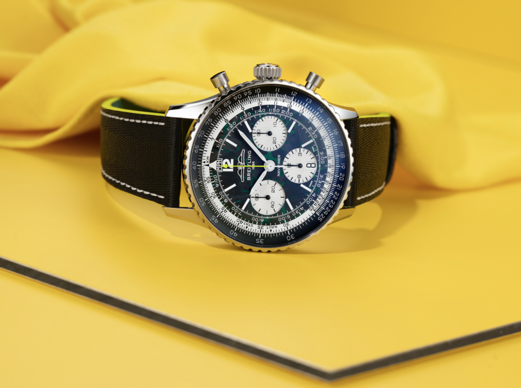 Cette collaboration couvre tout l’univers Aston Martin, des véhicules haute performance assemblés manuellement à Gaydon et St Athan à la poursuite de la gloire par son équipe de Formule 1. Ce nouveau partenariat débute avec la montre Navitimer B01 Chronograph 43 Aston Martin Aramco Formula One Team, qui restitue toute l’intensité de la course.
