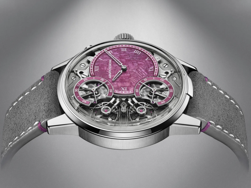 Logée dans un boîtier en acier inoxydable de 43 mm et dotée d’un bracelet en Alcantara gris aux surpiqûres blanches, l’édition Ruby affirme une présence minérale saisissante. Des chiffres romains blancs imprimés complètent l’affichage, apportant une touche classique qui contraste avec le design structurel contemporain de la montre. Limitée à 5 exemplaires.