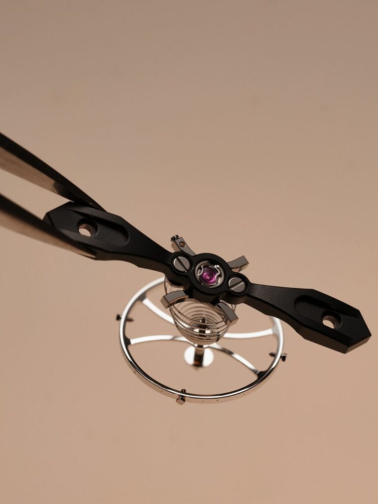 La lame en silicium, d’une couleur violette éclatante, ne mesure que 14 microns de large, tandis que le ressort spiral de l’échappement ne présente que 120 microns d’épaisseur (à titre de comparaison, un cheveu humain mesure entre 50 et 90 microns d’épaisseur). Ces chiffres illustrent les exigences de qualité strictes auxquelles la Manufacture se conforme chaque jour.