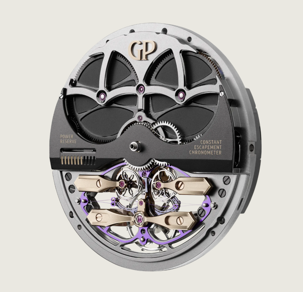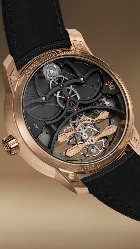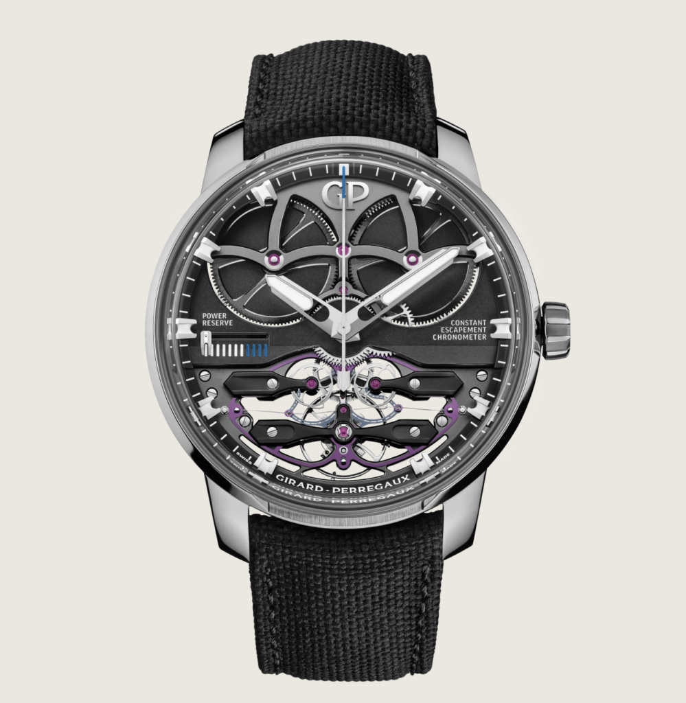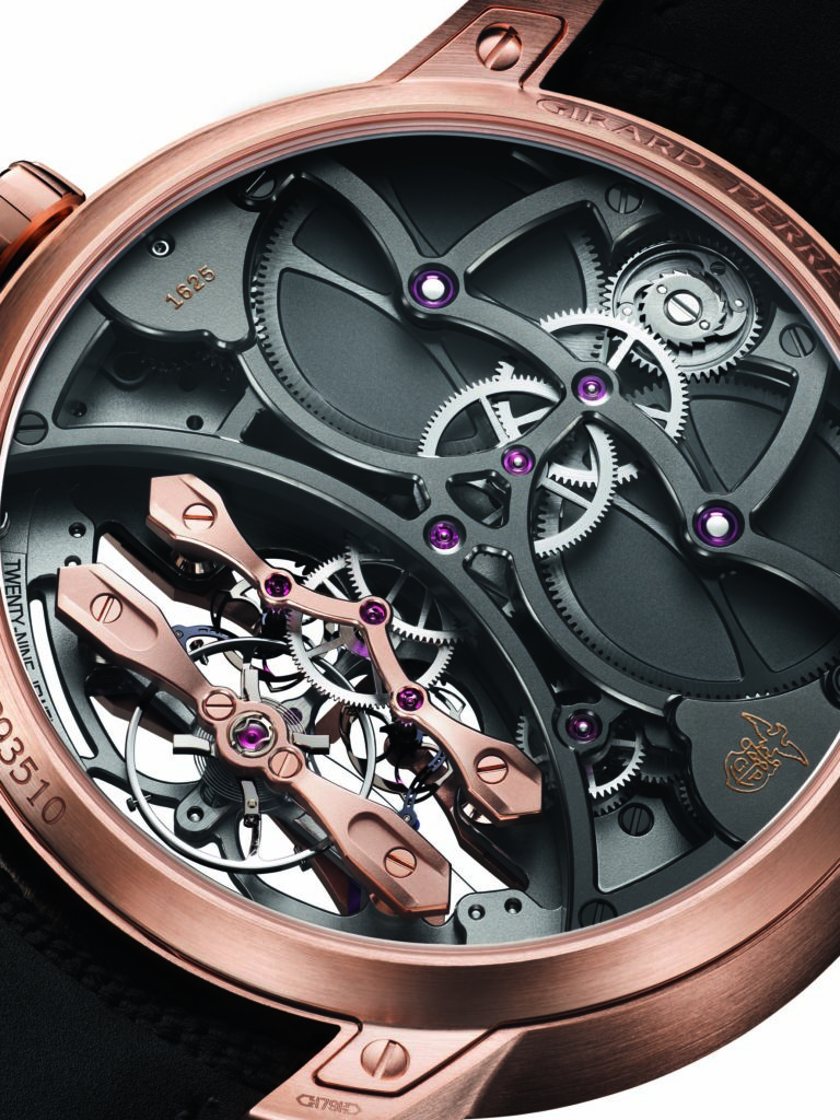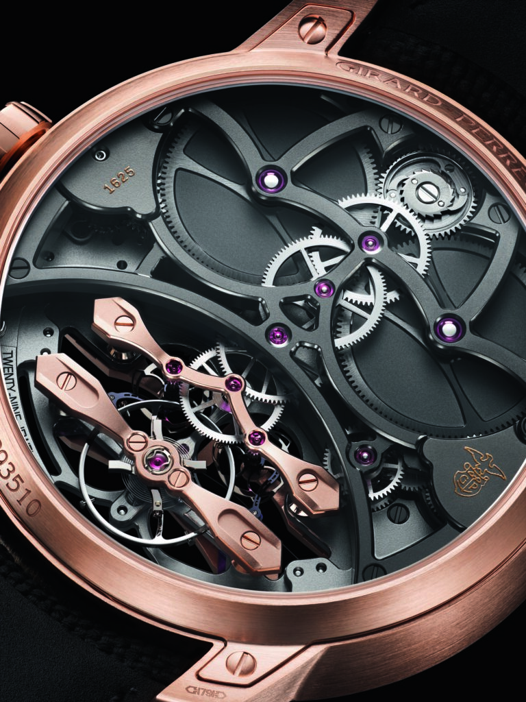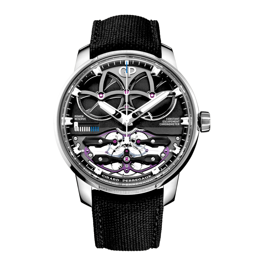 La montre intégrait une lame en silicium unique qui faisait vibrer le balancier en libérant une dose d’énergie précise. En effet, quelle que soit l’énergie stockée dans les deux barillets, la force agissant sur le balancier restait uniforme jusqu’à épuisement, garantissant ainsi une amplitude constante et une marche régulière. Le remarquable modèle échappement Constant L.M. a reçu une distinction indépendante lors du GPHG (Grand Prix d’Horlogerie de Genève), ce qui a permis à Girard-Perregaux de remporter la prestigieuse Aiguille d’Or (2013). La Manufacture n’a cessé de rechercher le progrès, comme en témoigne le lancement en 2023 de la Neo Constant Escapement, une montre qui intègre plusieurs améliorations esthétiques et techniques.