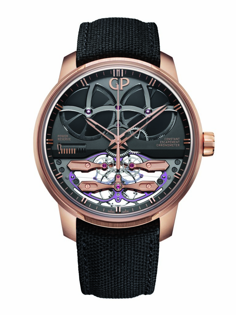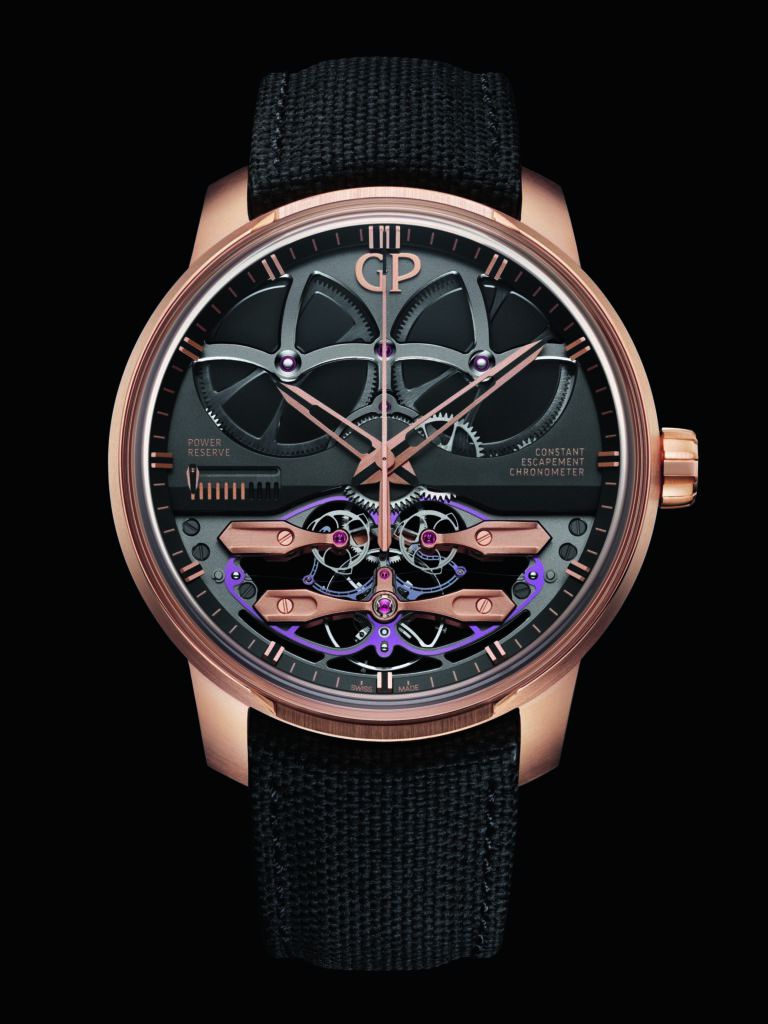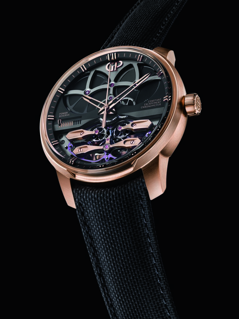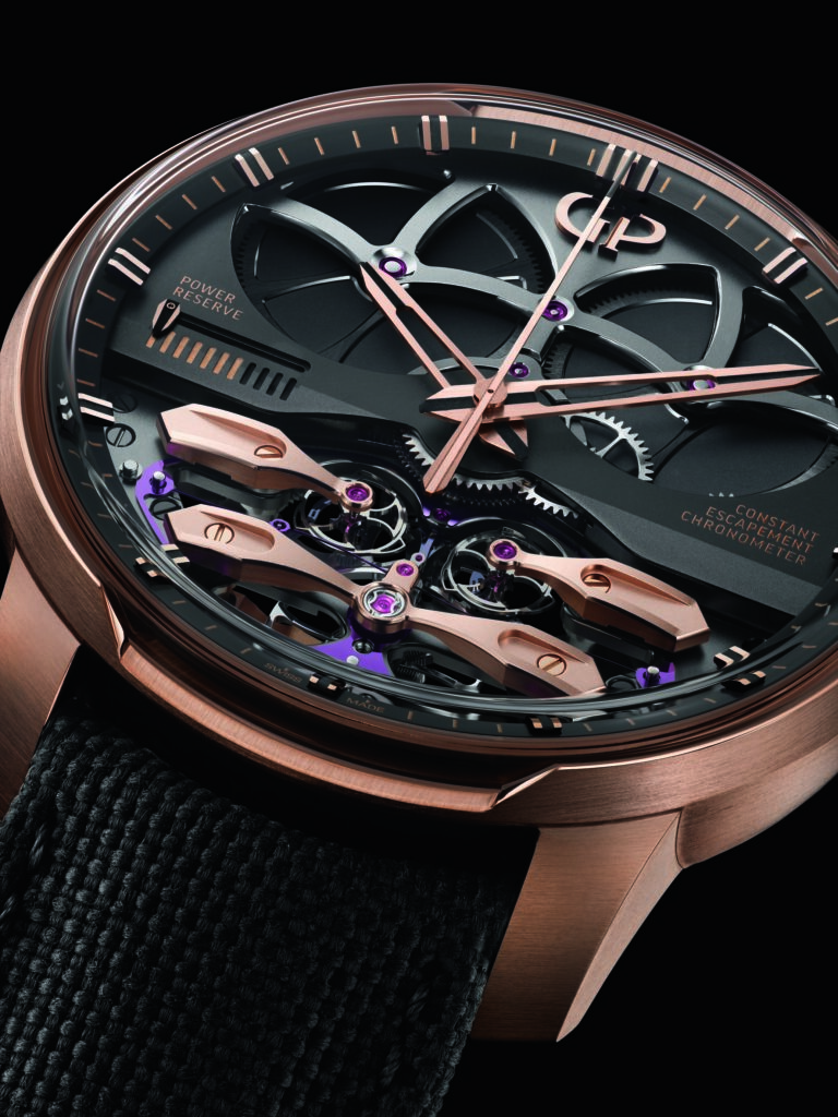 Forte du succès remporté par la Neo Constant Escapement, Girard-Perregaux dévoile aujourd’hui deux nouvelles interprétations de ce modèle. La première, qui intègre la collection phare Neo Constant Escapement, est une version en or rose 18 carats. Sa réalisation atteste qu’une technologie de pointe et un matériau traditionnel et précieux peuvent coexister en toute harmonie. La seconde est une pièce en édition ultralimitée, arborant un boîtier composite en carbone et silicium. La combinaison remarquablement inventive des matériaux confère à ce gardetemps un caractère contemporain et un niveau de sophistication technique exceptionnel. Les deux modèles sont équipés du calibre GP09200 certifié COSC, entièrement développé en interne au terme de 20 ans de recherche et développement et de l’essai de dizaines de ressorts d’échappement en silicium afin d’obtenir une géométrie parfaite. Il fait l’objet de 15 brevets (dont deux en instance).