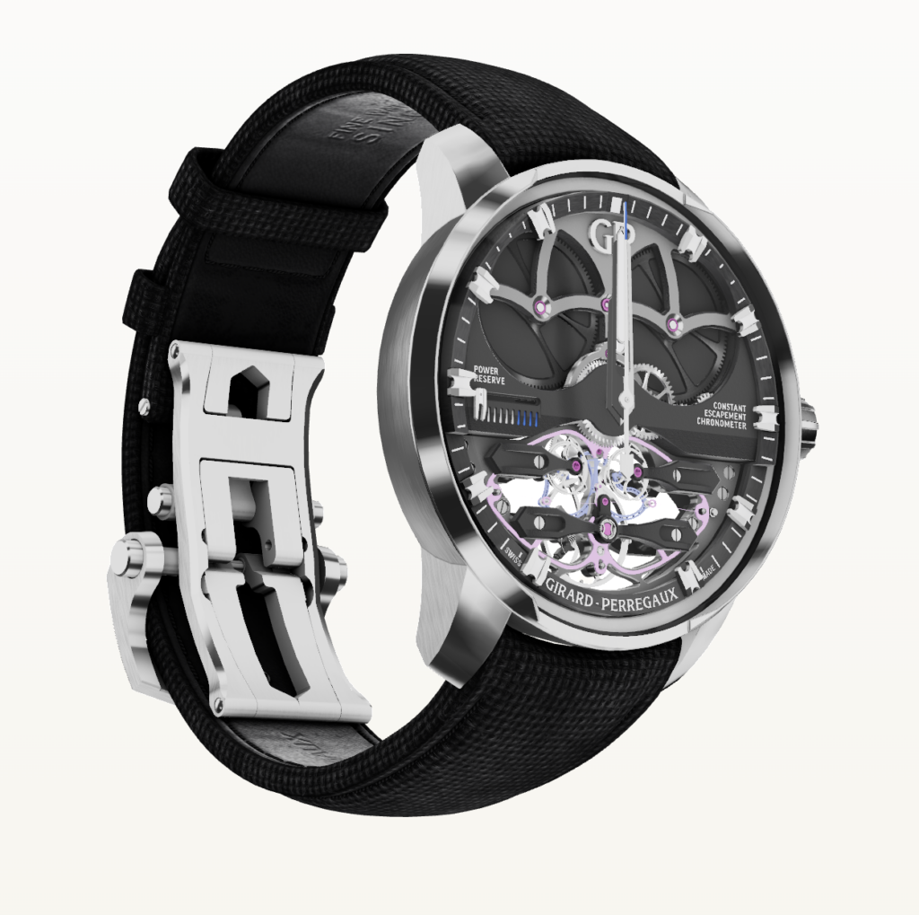 Depuis sa création en 1791, il y a 234 ans, Girard-Perregaux n’a cessé de faire preuve d’un esprit novateur. La Maison a démontré son engagement constant envers les plus hauts niveaux de recherche et développement techniques, tout en poursuivant la quête de la beauté avec la même exigence. Elle a notamment créé le Tourbillon sous Trois Ponts en 1867, conçu le premier calibre haute fréquence (5 Hz) en 1965 et lancé la première montre à quartz industriellement produite en Suisse six ans plus tard, en 1971. Girard-Perregaux est également à l’origine de l’échappement Constant L.M. en 2013. Ce modèle est l’aboutissement de plusieurs années de recherche et développement inspirées par un moment ordinaire de la vie quotidienne. Toute l’histoire a commencé par un voyage en train. En observant un billet plié tenu entre deux doigts, un horloger inventif remarqua qu’il se courbait en formant un « C » avant de se redresser brusquement dans le sens opposé – un phénomène connu sous le nom de flambage. Ce moment d’inspiration a révélé comment l’énergie stockée pouvait être libérée de manière parfaitement uniforme ; c’est cette idée qui est au coeur même de l’échappement Constant.