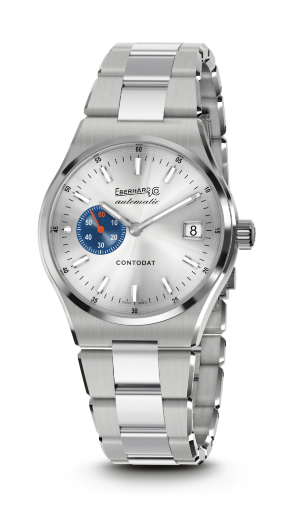 Le « Contodat Chronographe » est un chronographe mécanique à remontage automatique, au design accrocheur et riche en contrastes chromatiques, inspiré d’un modèle signé Eberhard & Co. datant de la seconde moitié des années 1970.